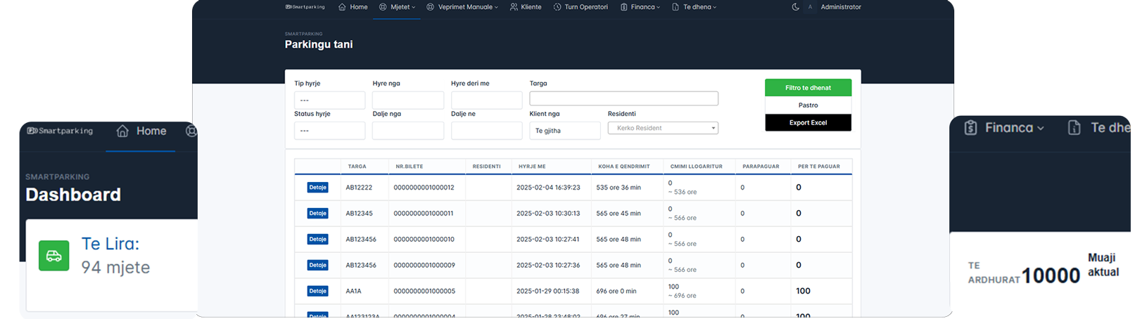 Smart Parking ofron një sistem të sigurt dhe të besueshëm për menaxhimin e financave dhe parkimit. Me teknologjinë tonë të avancuar, ju mund të keni një pasqyrë të plotë dhe të saktë të të gjitha transaksioneve dhe aktiviteteve, duke siguruar transparencë dhe efikasitet. Qëllimi ynë është të ofrojmë një menaxhim të sigurt dhe të thjeshtë të parkimit, duke mundësuar kështu që çdo biznes të përfitojë maksimalisht nga hapësirat e parkimit dhe nga proceset financiare.